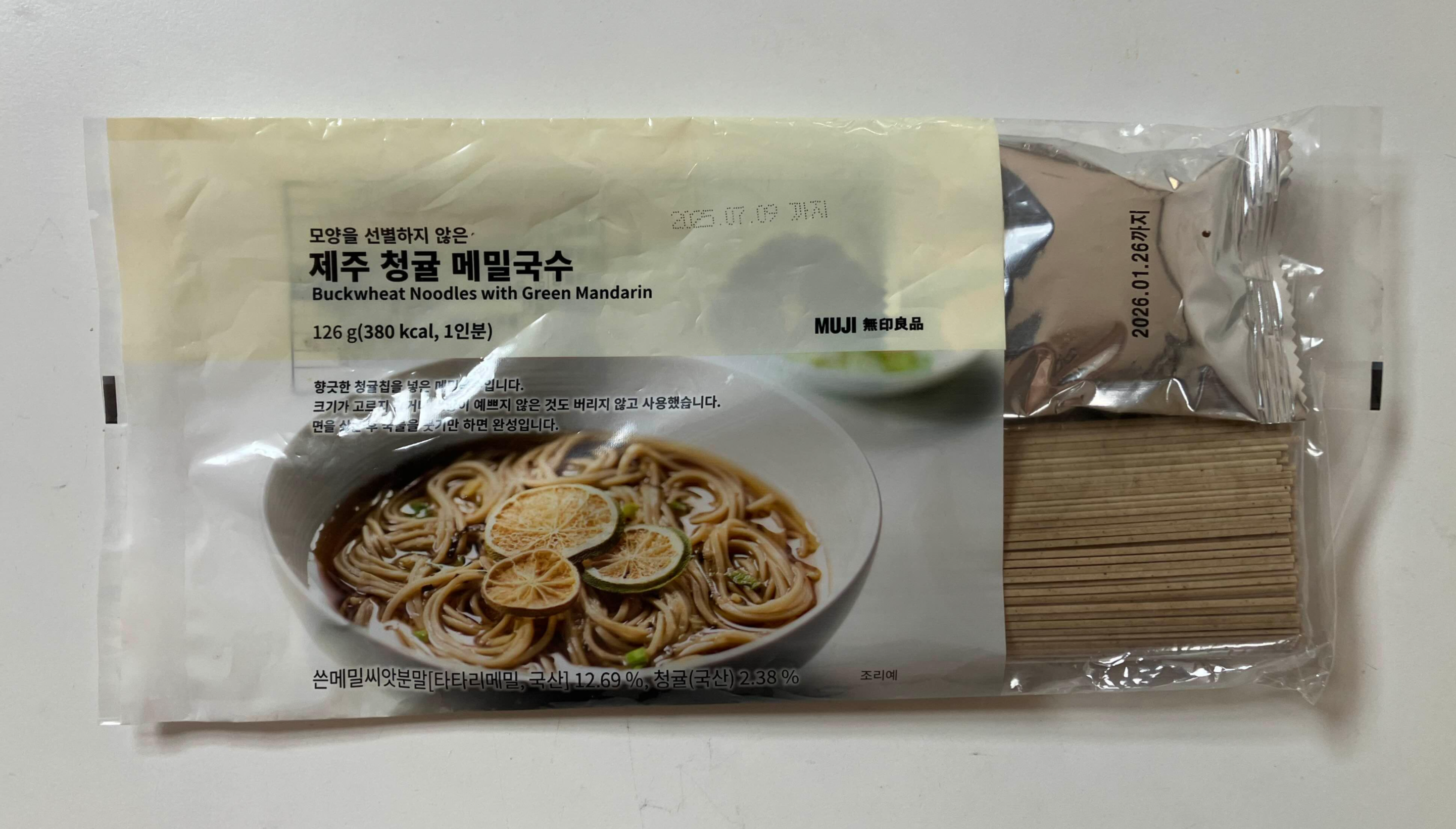 예전에 무지에 놀러 갔다가 호기심에 하나 집어 왔었던 제주 청귤 메밀국수.